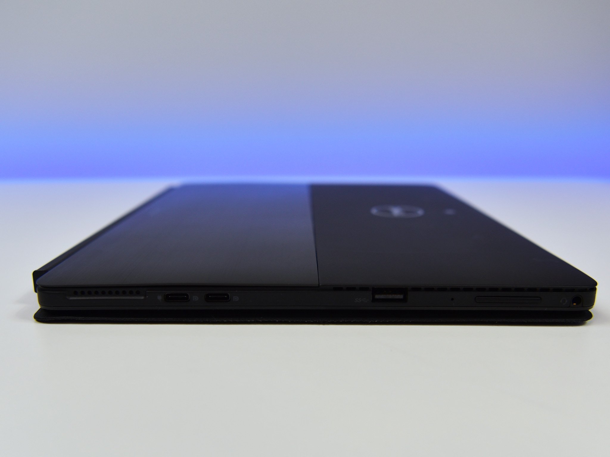 Combined with the Dell Travel Keyboard, the Latitude 5285 is a smidge thicker than a Surface Pro 4 and a bit heavier at 2.7 pounds (1.22 kg) versus 2.45 pounds (1.11kg).
