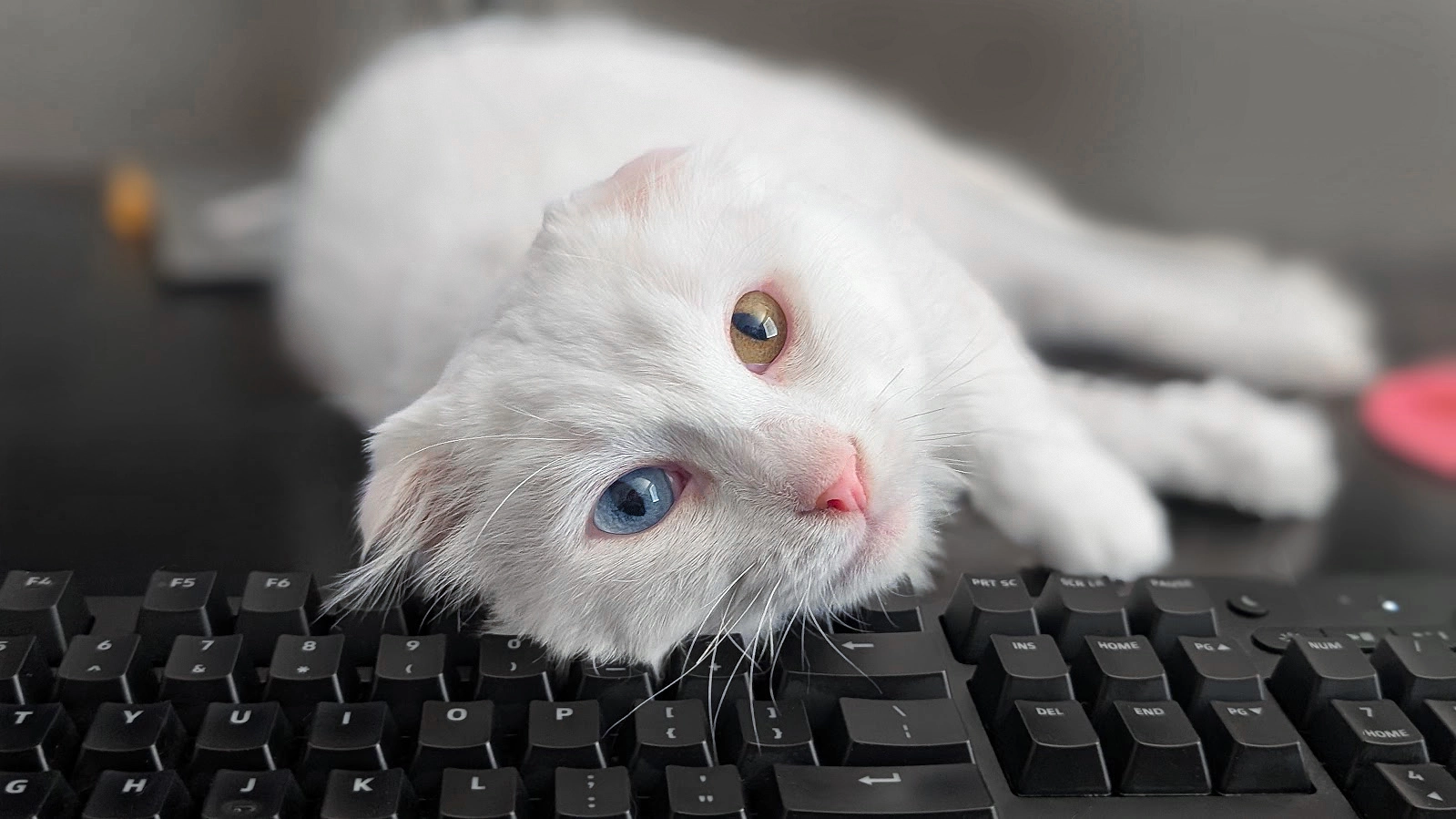 My black cat, Sabrina, frequently attacks the cursor on the monitor. My grey tabby, Misty, chews on cables. And my white cat, Dandy, loves to lie down on the keyboard. After some trial and error, I've found ways to keep them from disrupting my office hours and gaming sessions.