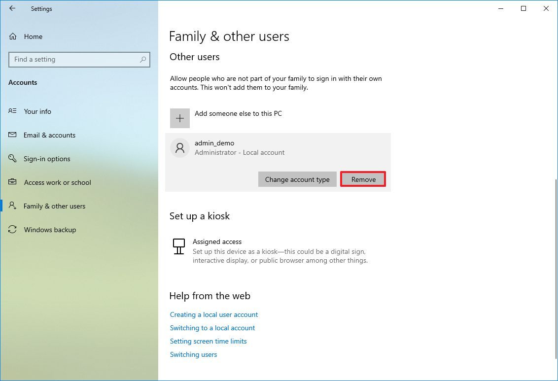 Once you complete the steps, the profile and data will be removed from the computer, regaining more space for other files. You may need to repeat the steps to delete other accounts on Windows 10.