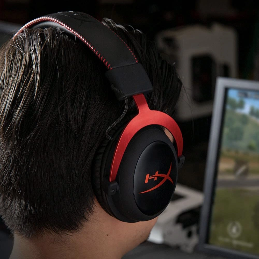 So the Cloud II is a great headset. It uses USB audio sound and can do virtual 7.1 surround sound. The idea isn't to give you true surround sound but to give you fantastic positional audio while playing games. You'll always know where the noises are coming from, like when someone's coming around a corner or you're trying to sneak up on a guard by surprise in the latest roleplaying game. Of course, you know, you've still got to have the mechanics to aim and stuff but we can't help with that.