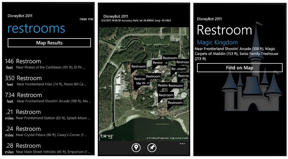 Heading to Disney World Resort this summer? There's a Windows Phone app out there that may lessen the headache of finding your way around the theme parks. DisneyBot is a travel application that maps out Disney World covering restrooms, rides, attractions and park times. The app uses your Windows Phone location services with Bing Maps to guide your way around the parks.