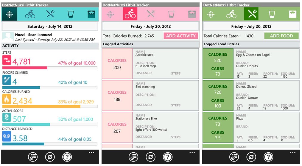 The Activity Tracker isn't an "official Fitbit" app but does tap into the Fitbit API to deliver your Fitbit data to your Windows Phone including your daily stats, activities, water intake, weight tracking, and food consumption. While the DotNetNuzzi Fitbit Activity Tracker is restricted to only viewing your Fitbit data, future updates hope to bring the capability to add data to your daily activities.