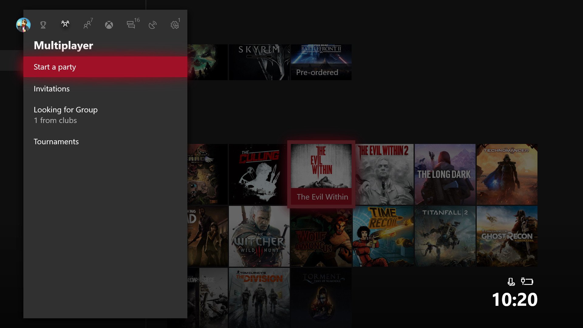 Previously, all party invites were dumped into a single location along with all notifications, including messages on Xbox Live, toasts from UWP programs like Skype, and more. Now, all party invitations are found in the new Multiplayer section of the guide, as seen here.
