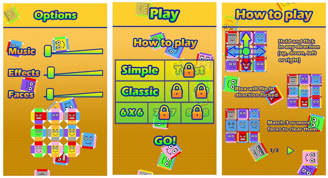 Overall, Flip Blox is a fun game to pass the time with. Graphics are bright and colorful, the facial animations add to the experience, and game play is challenging enough to keep things interesting. I'm not sure how well the game would hold up to marathon gaming sessions but for short bits of time, it's a fun game.