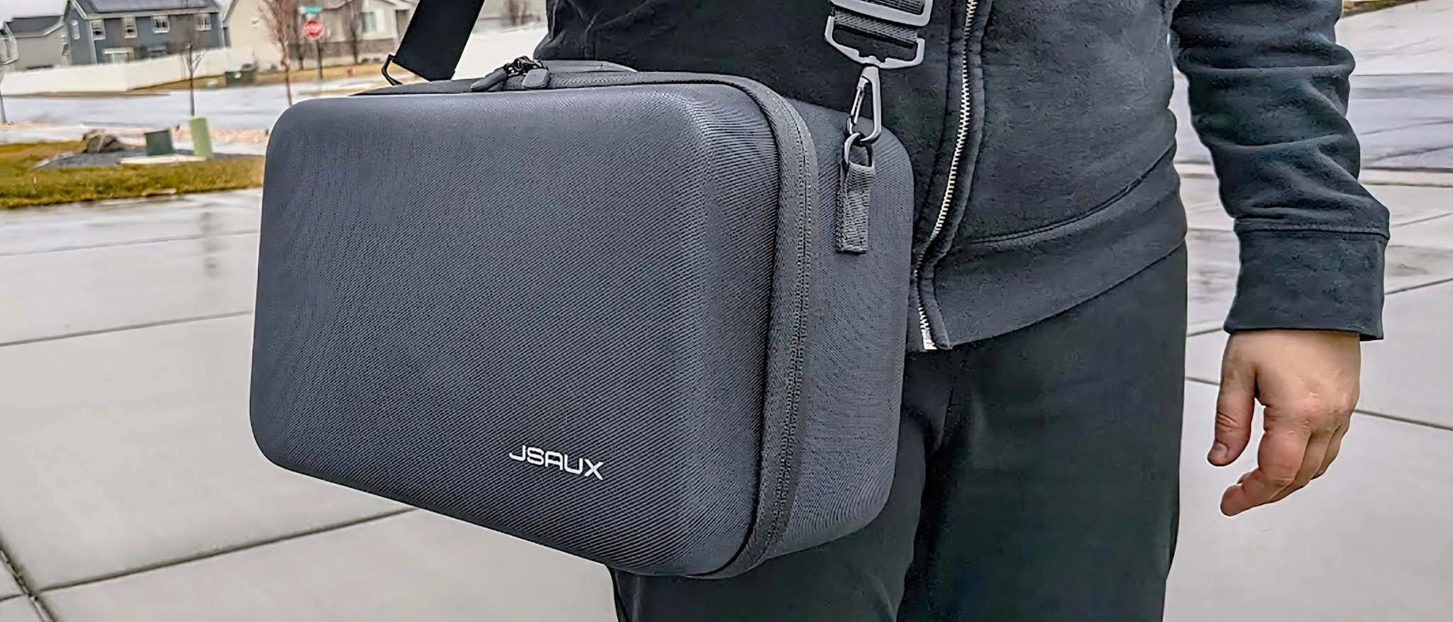 A removable shoulder strap attaches on either side of the hard shell case and can be adjusted a fair amount. In my case, the farthest extension allowed it to rest relatively level with my hips. To get a sense of how comfortable the JSAUX Carrying Case is in transit, I went around my block a couple of times while carrying it over my shoulder. It never felt too heavy, and I was able to position the case to keep out of the way of my swinging arms. All in all, it proved to be very convenient and comfortable.