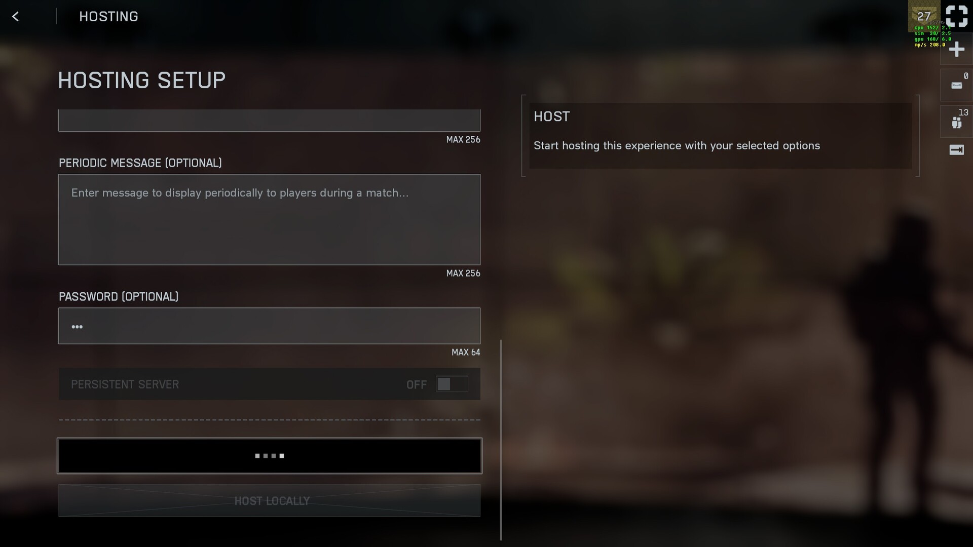 From here, you have a few choices to make. You can either join a game in progress, which may put you against other players, or host your own.