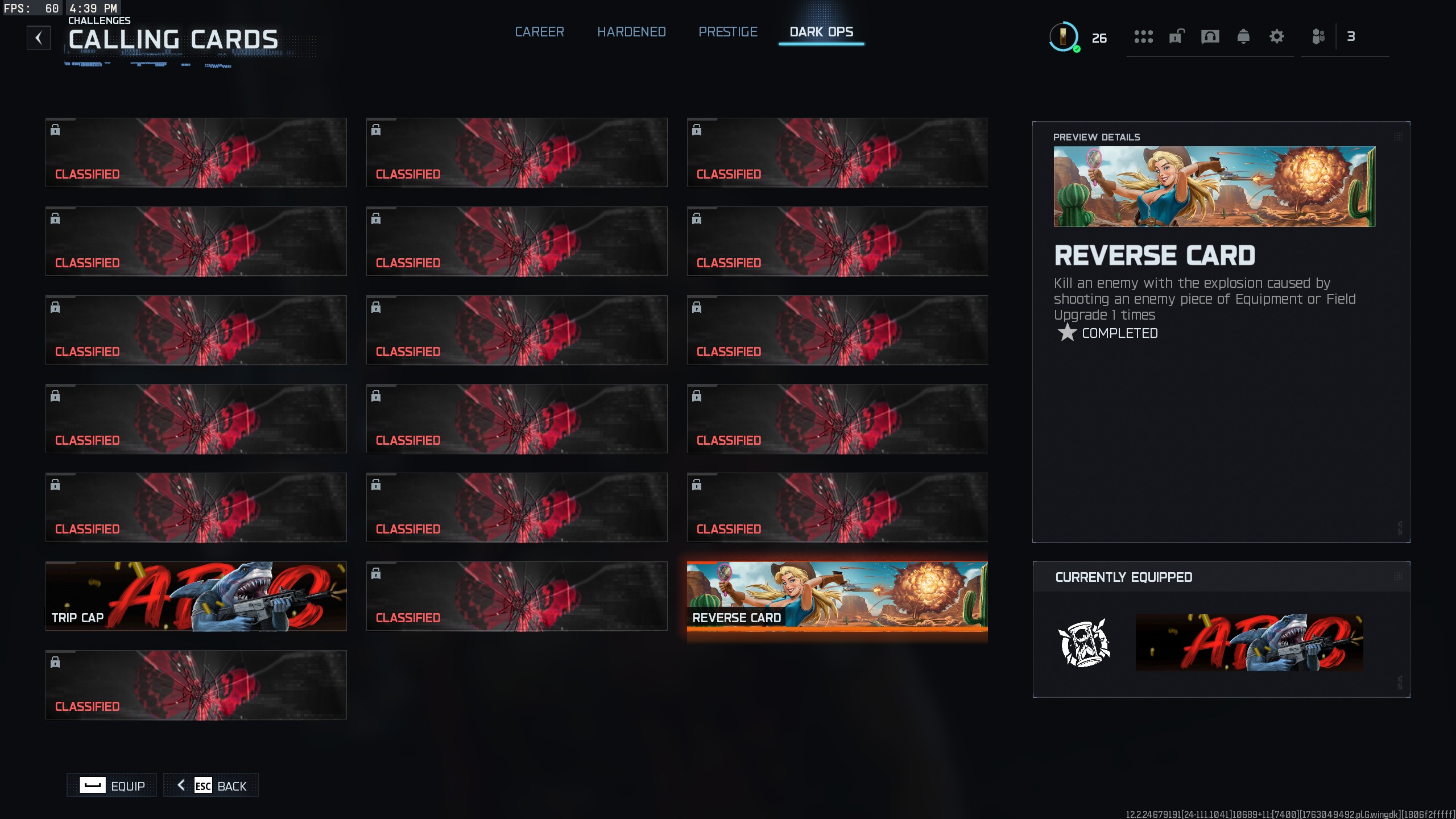 - Reverse Card — Kill an enemy with the explosion caused by shooting an enemy piece of Equipment or Field Upgrade 1 times.