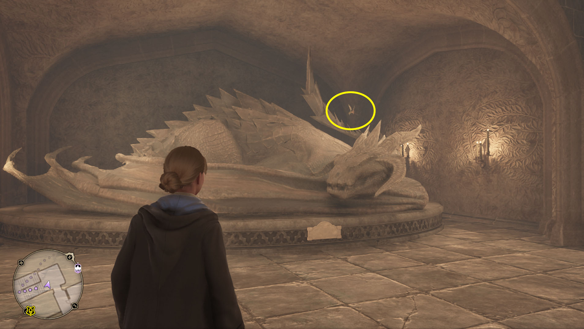 Key Location: Go to The South Wing → Hospital Wing and then down the spiral stairs next to the Floo Flame. When at the base of the stairs go right through the hallways cluttered with picture frames toward the Clock Tower. The Daedalian Key will be flying around the gears in this room.