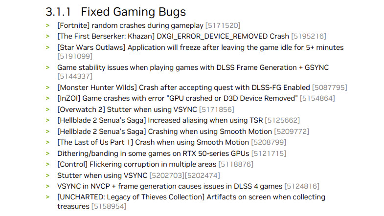 The biggest news surrounding the new 576.02 driver, however, is the extensive list of bug fixes.