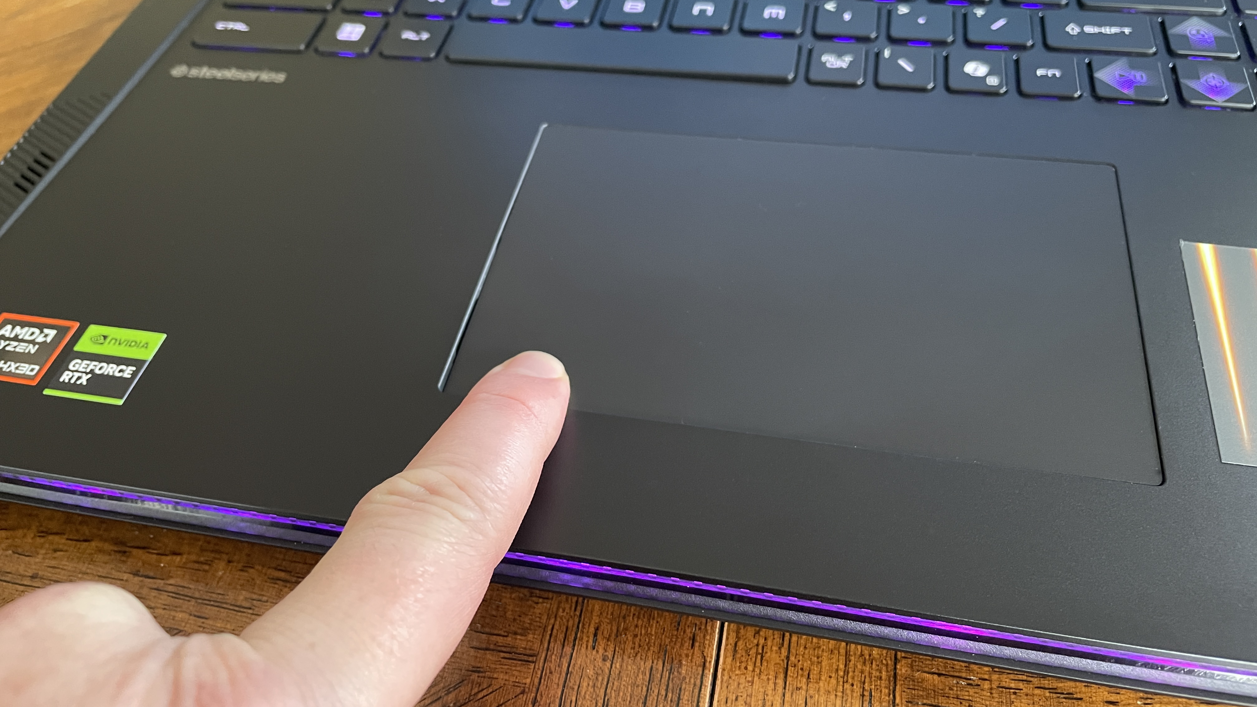 The plastic pad is smooth and tracks well, and in the end, that's what matters most. You might wish it were a glass touchpad if you were using the built-in pointer full-time, but I suspect most gamers are switching to a controller or an external mouse anyway.