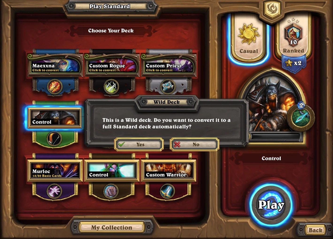 The current Basic and Classic sets will be phased out of competitive play and be marked as Legacy cards in the Wild format, which can be used in Adventure mode and casual Tavern Brawl matches. However, players looking for an old school experience can try the new Classic format, where they'll be able to make decks using the 240 cards available when the game launched in 2014. To make that easier, the number of decks players can have at one time will expand from 18 to 27.