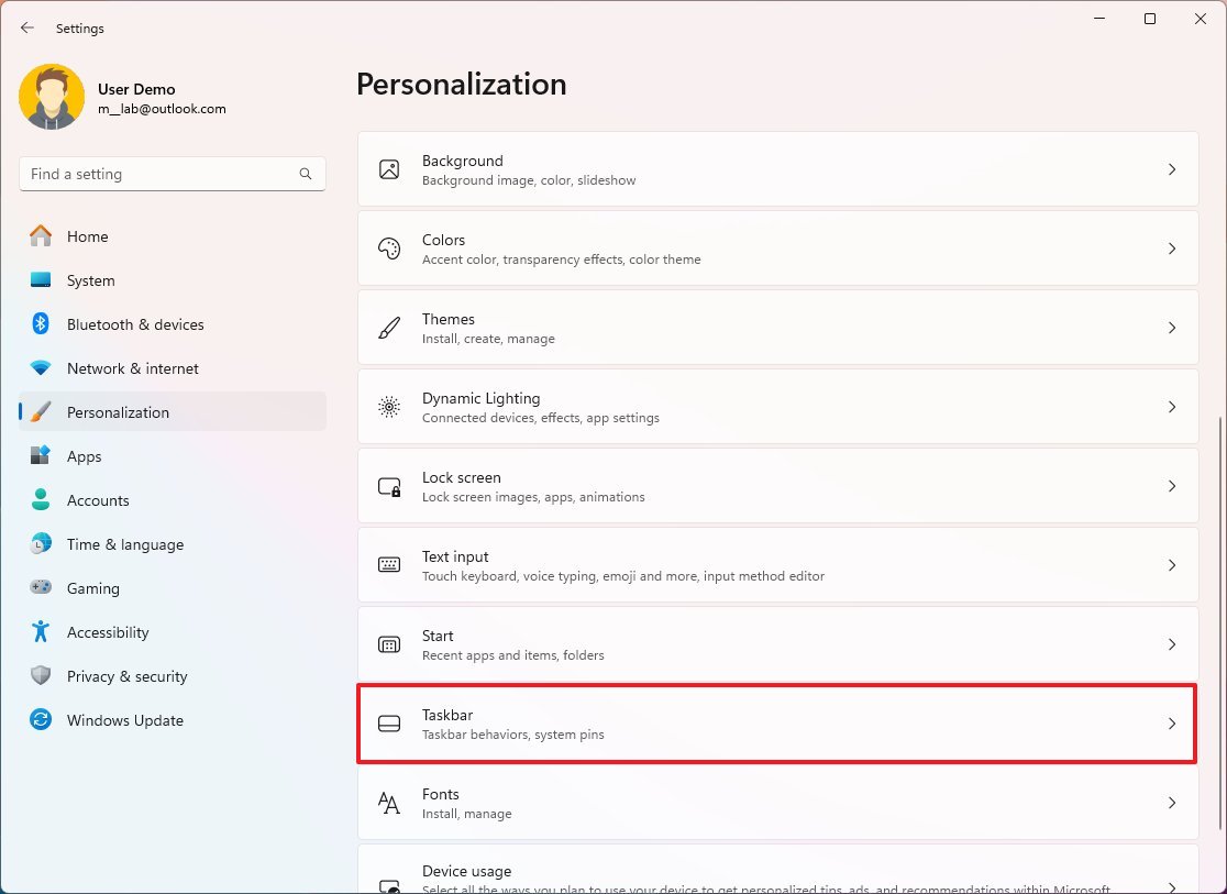 - Click the Taskbar behaviors setting.