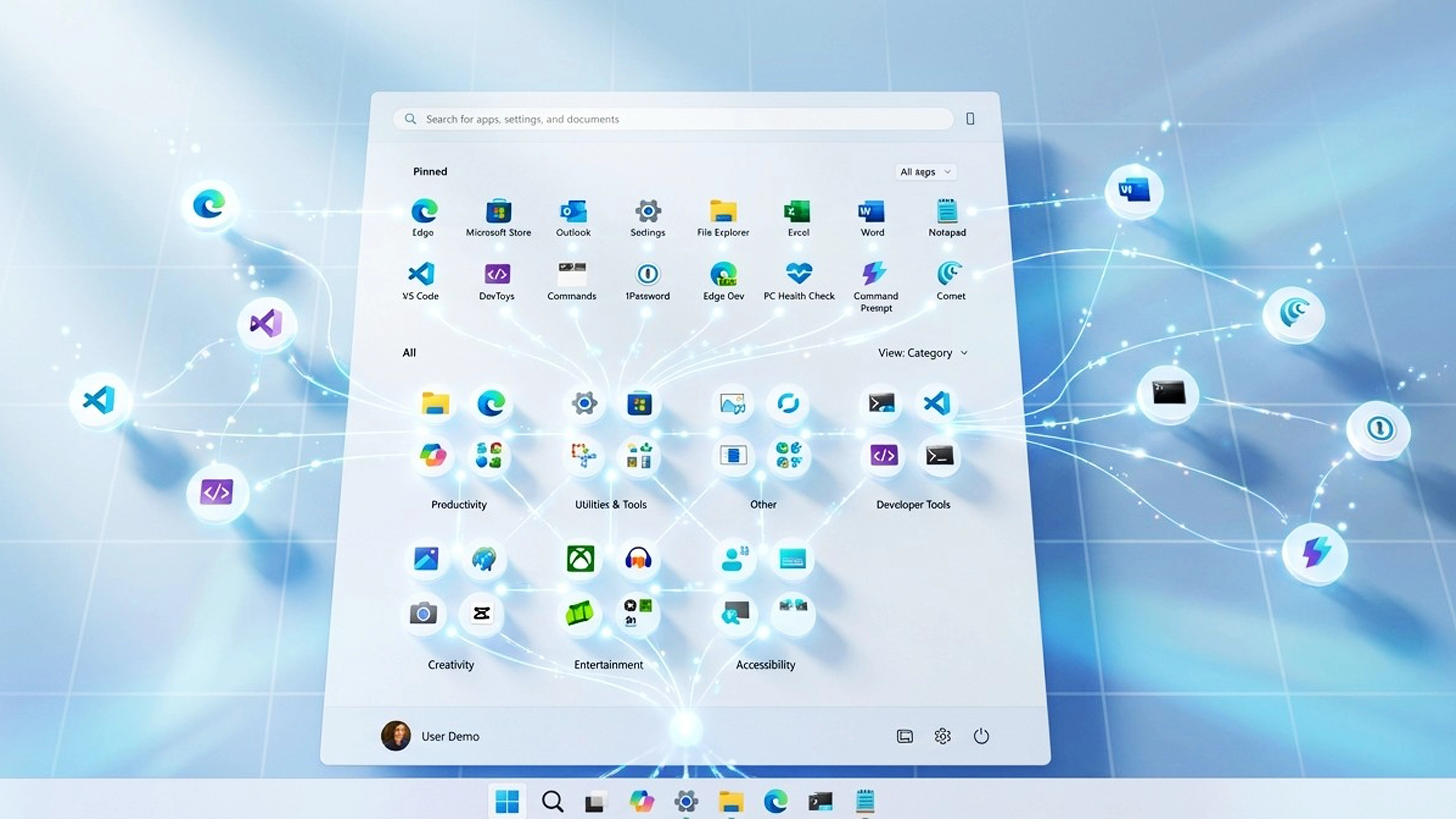 In the latest version of the operating system, Microsoft has introduced a refreshed Start menu layout that changes how apps and recommendations appear by making the interface larger and merging the "Pinned" section with the "All" menu, giving users even more flexibility.