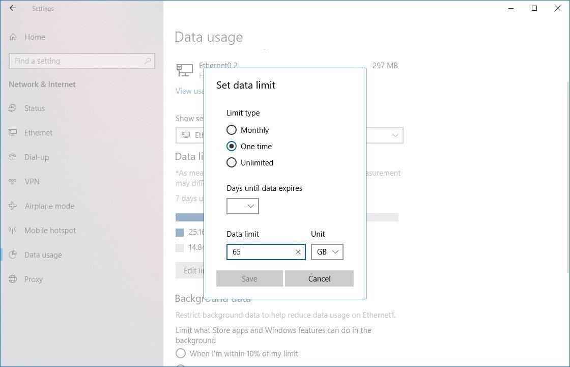 After setting up a data limit for a network adapter, you can always edit your settings or remove the current limit.