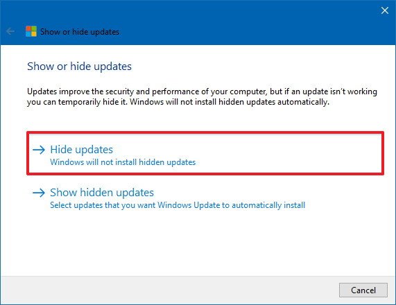 At any time, you can always show the update again using the same instructions mentioned above, but on step 4, you have to use the Show hidden updates option. Then use Windows Update to download the patch again.