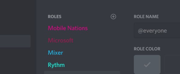 - Choose "Roles" from the menu on the left. (The @everyone role is the default role assigned by the server to anyone who doesn't have a set role.)