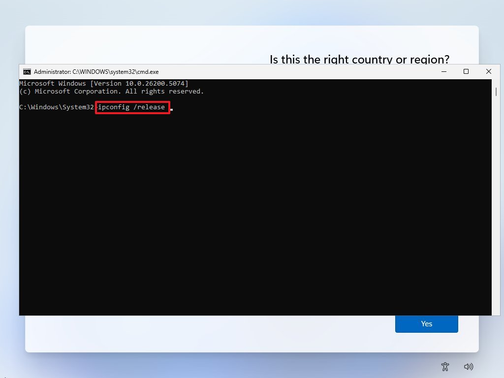 - Type the following command to drop the network connection and press Enter: ipconfig /release