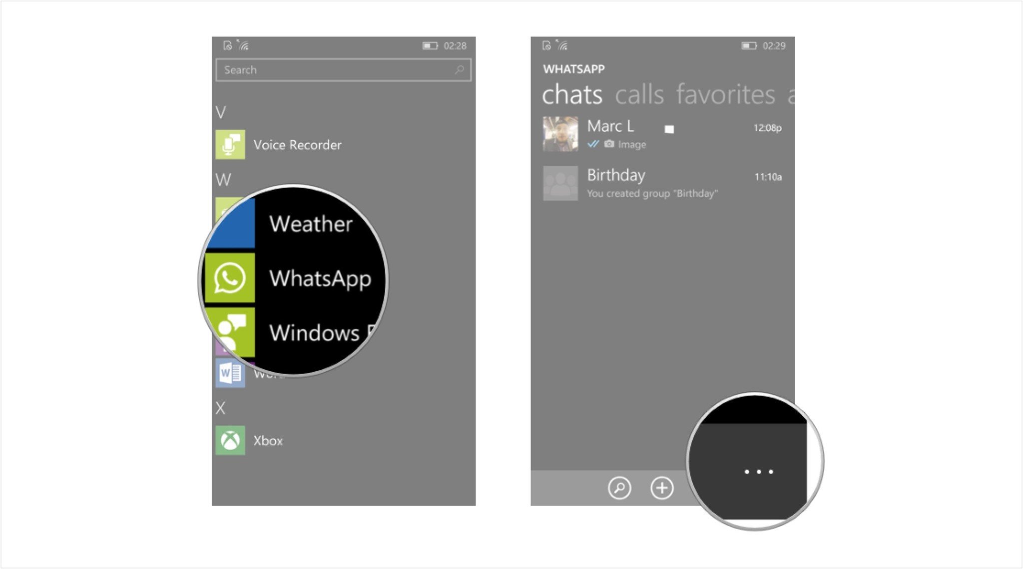 - Launch WhatsApp from the Applications List on your Windows 10 Mobile phone.