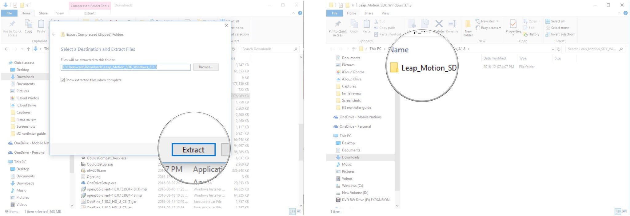 - Right-click the Leap_Motion_SDK compressed folder.