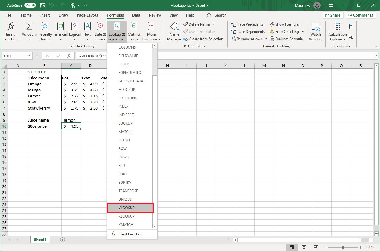 In this Windows 10 guide, we'll walk you through the steps to correctly write a basic VLOOKUP function with the desktop version of Microsoft Excel, whether you use the version of Office available through a Microsoft 365 subscription, Office 2019, Office 2016, or earlier version.