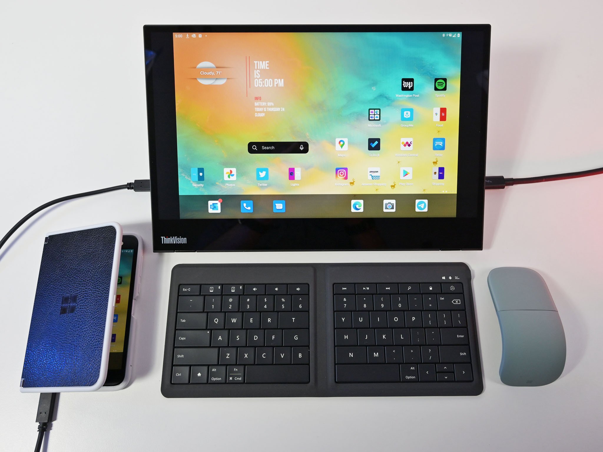 Pen support with Android was tricky. While the ThinkVision M14t runs Samsung DeX from the Galaxy Note 20 Ultra OK, I would sometimes get some display flashing when inking (but the inking was smooth at least). On Surface Duo, I could only get touch and inking to work by switching to Windows (ironically), but the pen target would be off from where I placed the tip, making it ineffective.