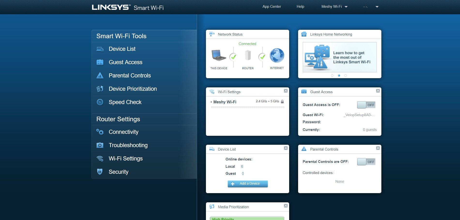 Once I'd set up the Velop using the Android app I switched over to the web browser. You sign in with the account you created during setup ― after having to click through an annoying page that tells you that you really should be using the app ― and from there you have free reign over settings, with a handy hub on the front page that you can customize with widgets.