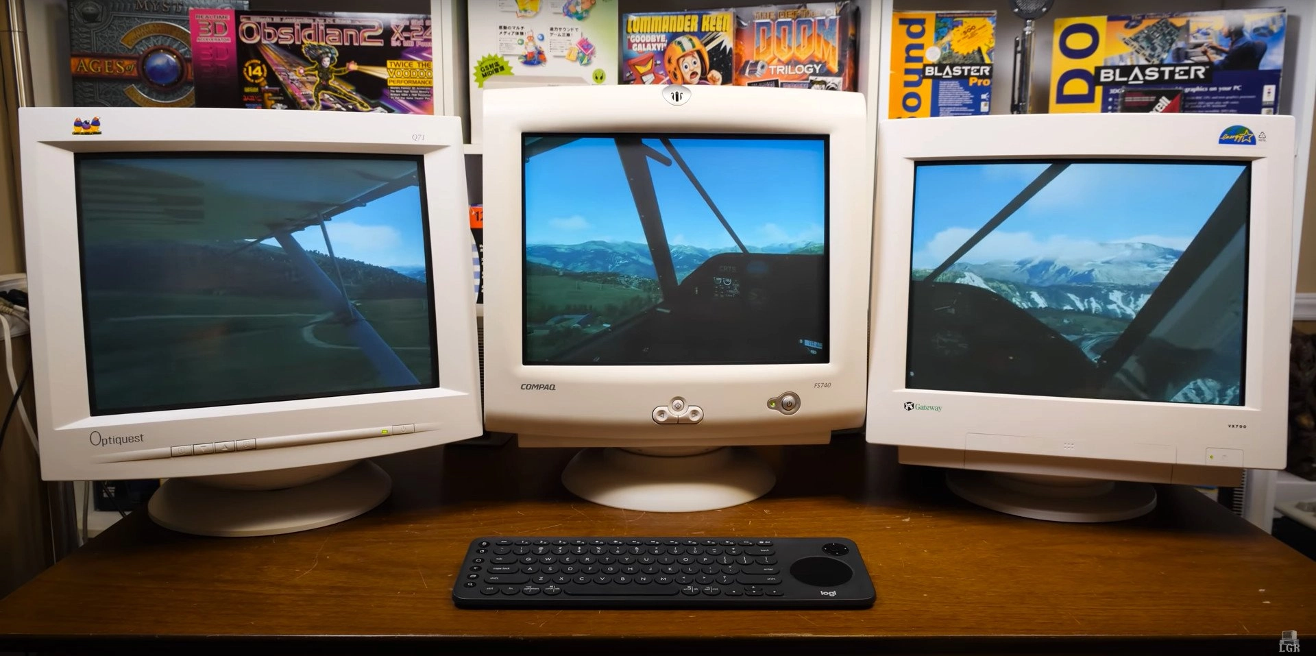 The video comes courtesy of the YouTube channel LGR, which focuses on retro gaming. LGR has a variety of videos that mash up old technology with new, such as running a floppy disk on a smartphone. In its recent video of Microsoft Flight Simulator, the game spans across monitors from Optiquest, COMPAQ, and Gateway. Those names should shoot you back into the days of Encarta and messaging your friends on AIM — or MSN Messenger if you're that person.