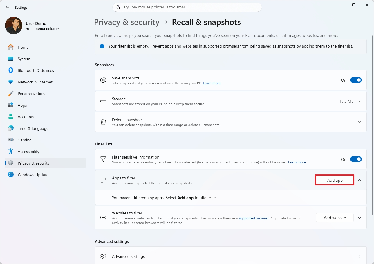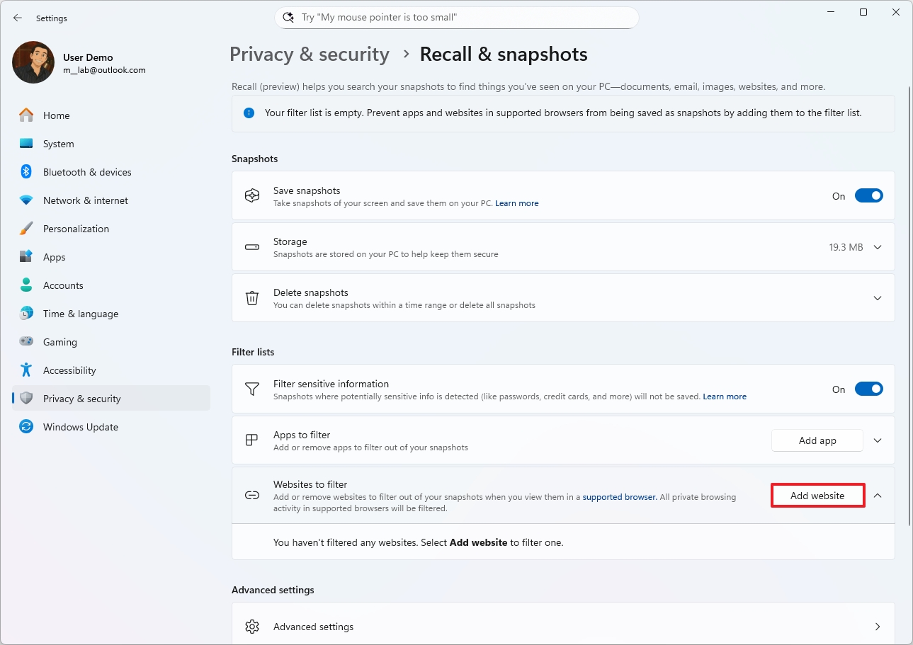 Although Windows Recall records virtually everything you do on your computer, the company is also adding a couple of settings to filter specific apps and websites from being part of the experience.