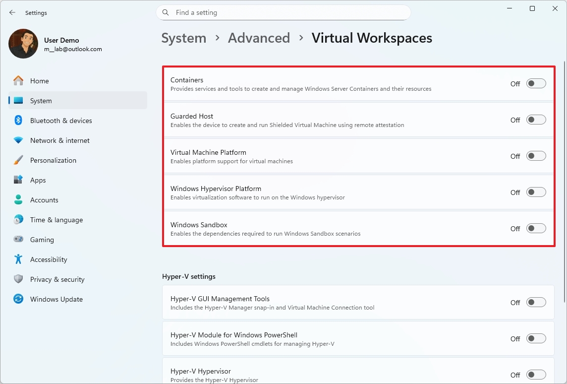 Also, the Settings app is getting a slew of improvements on the Home page with the addition of a new "Device info" card. The "About" page is getting another redesign. The Mobile Devices options are now integrated into the Settings app. Virtual Workspaces make it easier to manage virtualization features on Windows 11. More keyboard and mouse settings are coming to the app from Control Panel, and more.