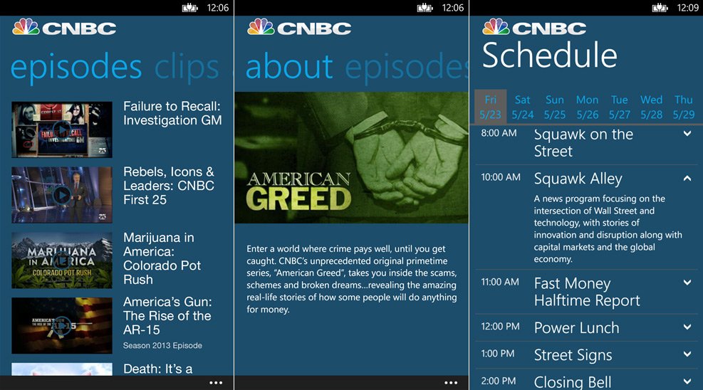 The official CNBC app has been released for Windows Phone. Users can gain access to popular Business Day and Prime shows on their smartphones, as well as checking out the latest in business news with Mad Money. All that's required is a cable or satellite provider account and you're ready to enjoy CNBC shows wherever you may be.
