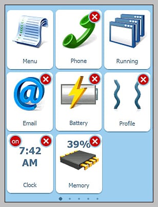 Buttons can be added to include launching applications, settings or contacts. If you set a button to a contact, it pulls up the contact information which can be dialed from. Re-arranging the buttons requires a simple press and hold of the screen which causes the icons to shake (sound familiar). When they are shaking you can delete them by tapping the red "x" or move them about the screen. Once things are arranged to your satisfaction, press the center d-pad button to stop the shaking. The re-arrangement appears to be limited to the page you are viewing and I couldn't find a way to drag a button from one screen to another. It is my understanding from Vito Technologies is that you should be able to shift icons from screen to screen and this may simply be a bug in the system that needs to be ironed out.