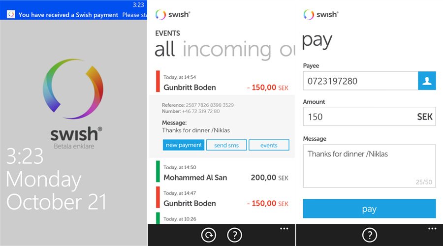 Swish (www.getswish.se) is a popular Swedish payment system that allows the transfer of money via mobile numbers. Funds are automatically withdrawn and deposited into respective accounts, regardless of the connected bank (as long as they're participating). The service has now launched an official app for Windows Phone, enabling those enrolled with Swish to get cracking on Microsoft's mobile platform.