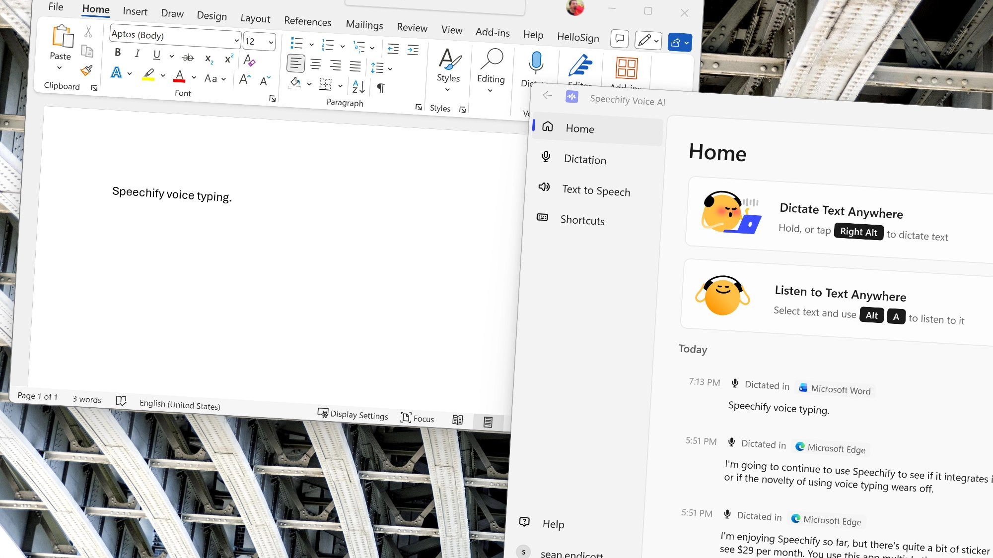 Because of how Speechify integrates with Windows, it allows me to speak very naturally, and I don't feel like I'm speaking to a robot. You might remember times where you spoke to your phone and you had to speak one word at a time, or you weren't speaking as yourself, and that's not what's happening here.