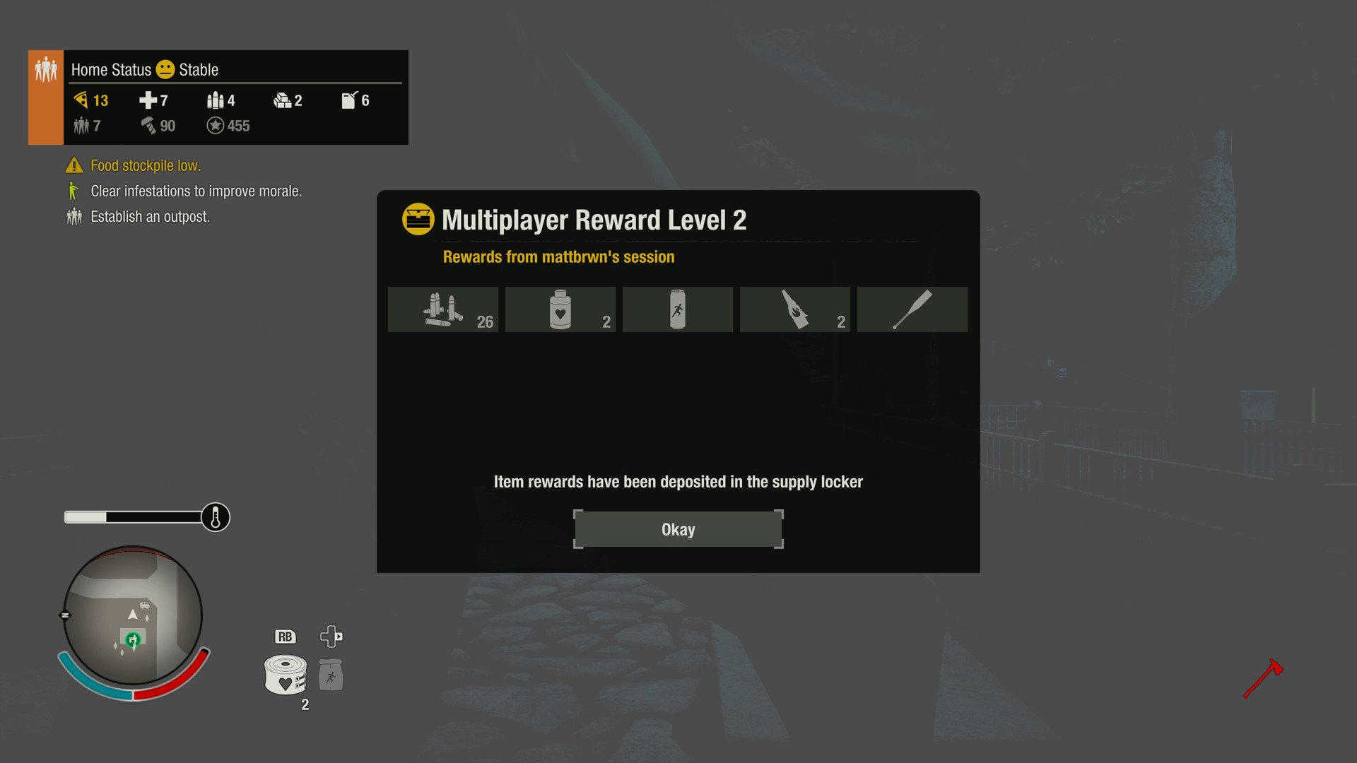State of Decay 2 allows you to call random players into your game to help you complete missions or scavenge via a flare gun. Of course, you can also invite directly via your Xbox friends list on console and PC. While inside the host's game, you're there to help them out, putting your own world progression on hold. However, your community characters will retain any experience and skill levels they get while inside another's world, in addition to Xbox achievement progress, and loot retention. You can still access your own stockpile of items while in another community's world (when it isn't bugged... that is), and deposit any goodies you find for when you go back to single player. Additionally, State of Decay 2 rewards players who jump into other's games to help out, giving them increasingly lucrative rewards the longer you spend in another's game.