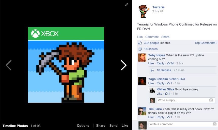 Terraria is finally coming to Windows Phone this Friday! This is a popular action-adventure sandbox game from indie developer Re-Logic. You'll already find Terraria on PC, Xbox 360 and PlayStation 3, iOS, Android and other platforms. It was announced well over a year for Windows Phone, but looks to finally be coming this Friday. And it'll bring Xbox Live integration!