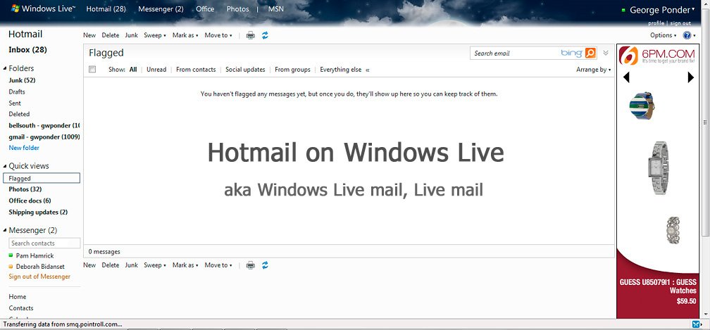 Windows Live: The online portal to Hotmail, Office Documents, Messenger, Photos, Skydrive, and other "cloud" services from Microsoft.