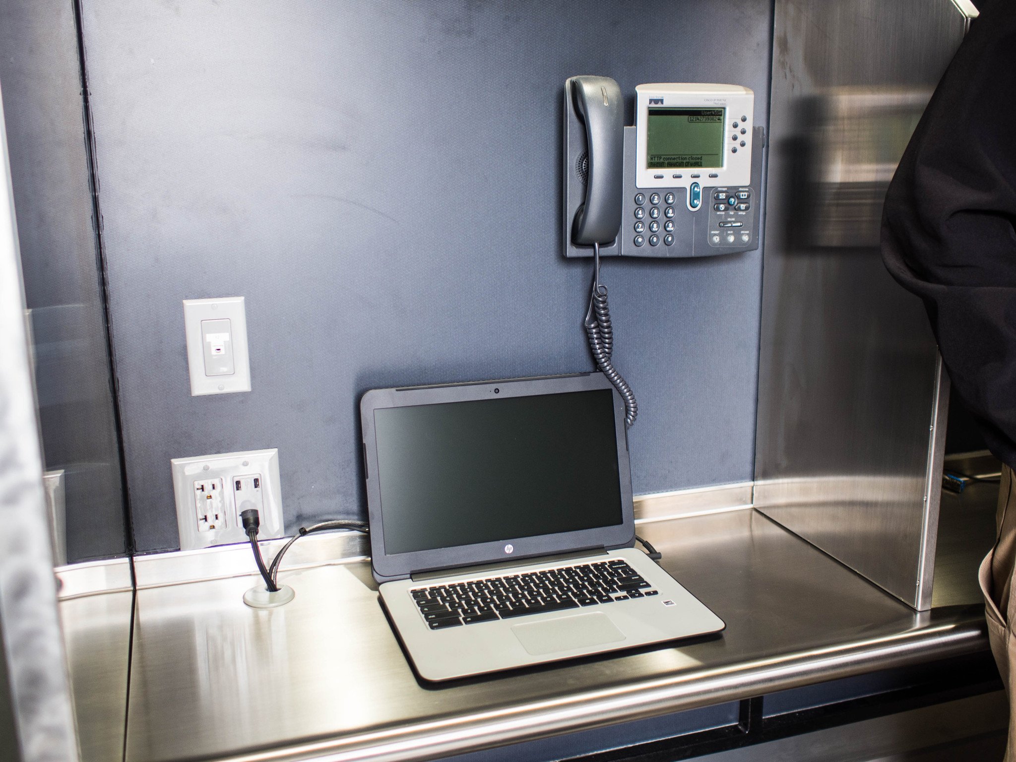 Verizon demonstrated how these workstations have been used for everything from FEMA paperwork stations and temporary workstations for police officers to temporary offices for displaced workers that need to check in and charge their hardware. The workstations themselves are simple but effective, offering power outlets and USB ports with an HP Chromebook and a telephone for anyone who needs them.