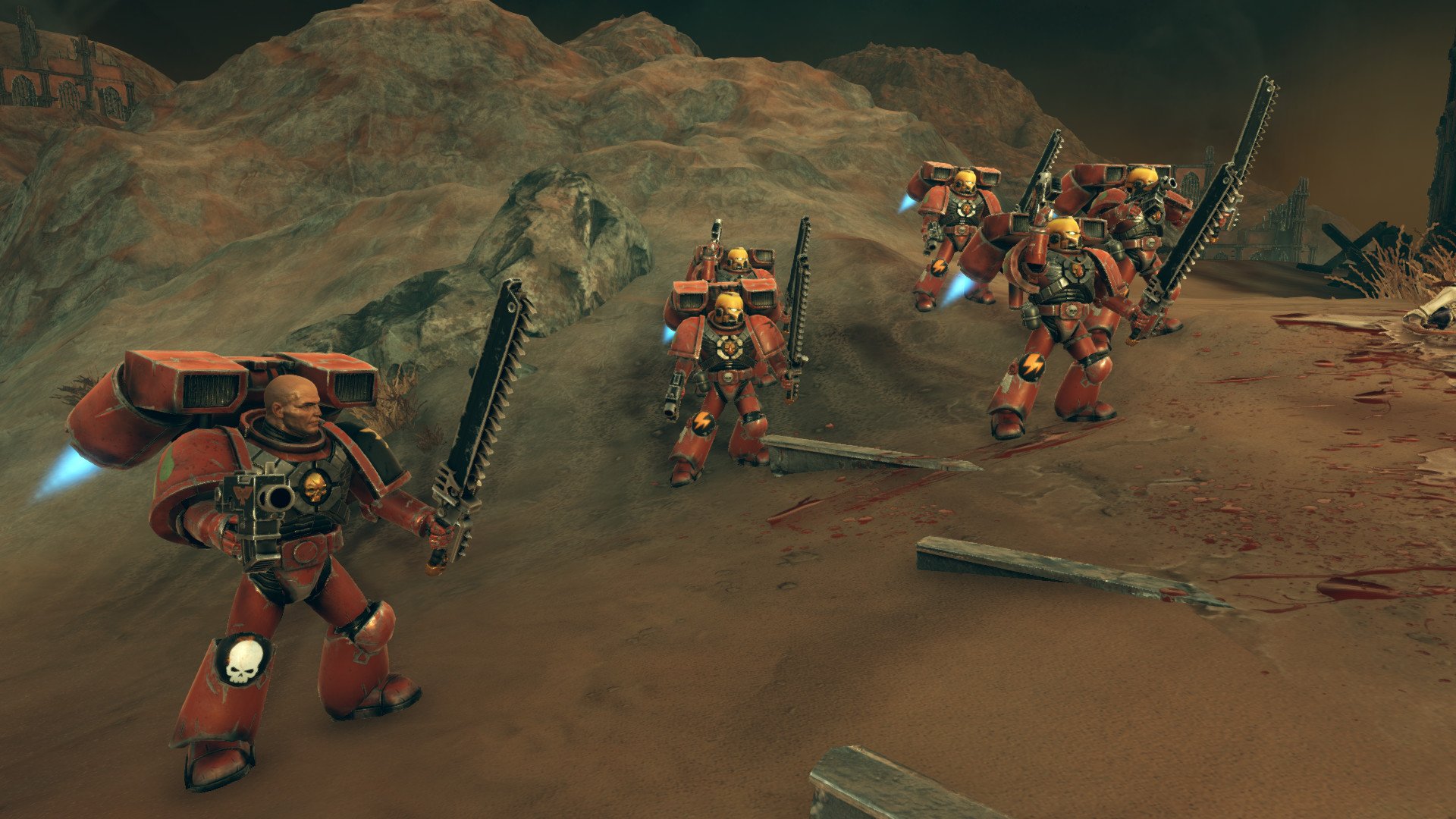 The single-player campaign has you command the Space Marines, an army of genetically enhanced super-soldiers designed to defend humanity from anything threatening to destroy it. There are many kinds of Space Marines, and the one you are specifically controlling in this game is the Blood Angels. Your mission is to command Sergeant Carleon and his squad of Blood Angels to purge their homeworld's moon of the Tyranids, which are a swarm of bloodthirsty alien monsters that are hell-bent on consuming every living being in the universe, leaving entire planets as empty husks.