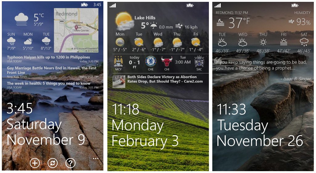 Along with the native Windows Phone lockscreen settings, there are several third party Windows Phone apps that let you customize the amount and what information is displayed on your lockscreen. These lockscreen apps will cycle through the wallpaper images, display weather forecasts, stock information, news headlines and more.