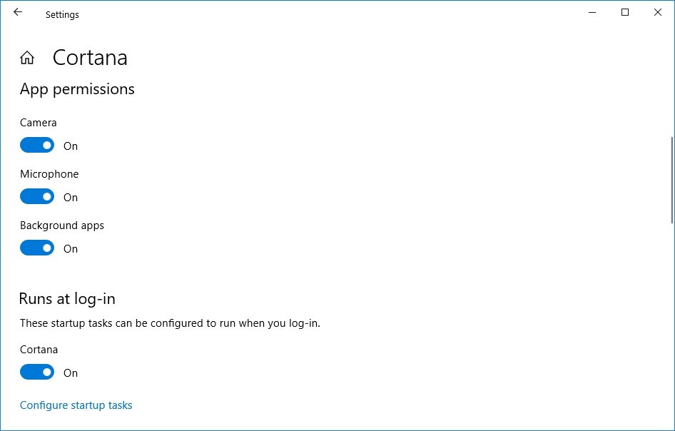 If you don't want the digital assistant to run on startup, under the "Runs at log-in" section, you now have a toggle switch to decide whether Cortana should launch automatically as you sign in to Windows 10.