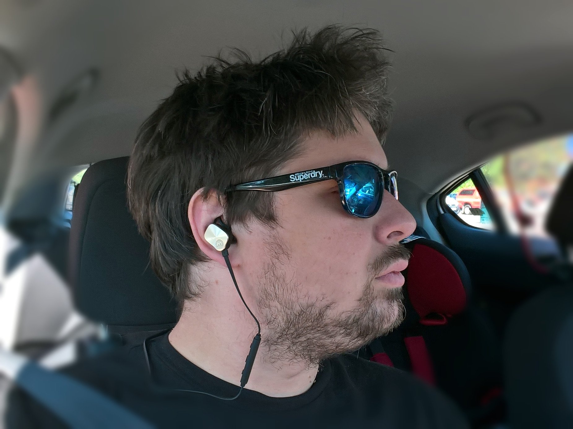 They're not actively cancelling noise but they fit snugly enough to block out just enough to make a short journey such as this more bearable. They're a bit chunky since all the electronics is in the earbuds themselves, but there's no denying they sound pretty great. Especially for the absurdly low price. They even look pretty good.