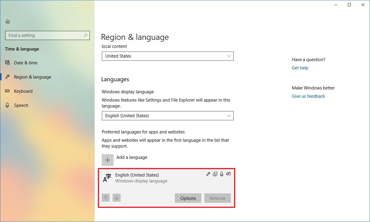 On Settings > Time & language, the Region & Language page has been updated, and now shows icons for each language entry to indicate if the language supports text-to-speech, speech recognition, and handwriting. Plus, there are two arrow buttons on each installed language that allows you to quickly change the priority of a language.
