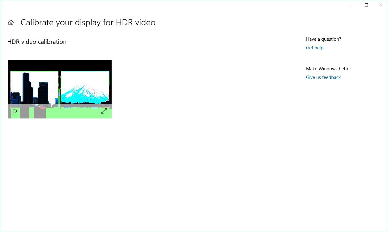 On Settings > Apps, the Video playback page has been updated with a tool to calibrate your display for HDR videos. Just click the Calibrate your display for HDR video link, click on the video, and start calibrating. Though, it seems that this tool isn't complete at this time.