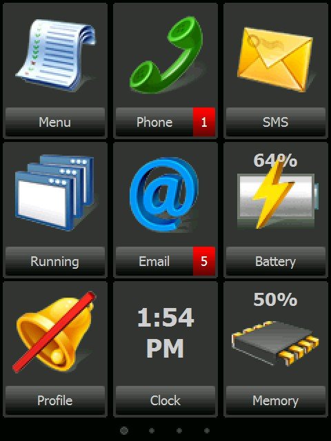 Mobile Shell offers users the ability to choose from a number of pre-defined icons or widgets (as well as user created) that can be re-arranged as desired on multiple pages of each layout style. Mobile Shell does a good job of allowing the use of icons that will send you past the front door of an application , directly to a bookmark, file, or feature of the app.