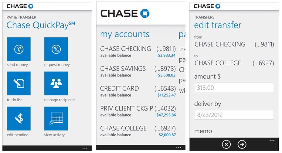 Chase Mobile: If you are a Chase banking customer, the Chase Mobile app for your Windows Phone is a great way to keep track of your finances.