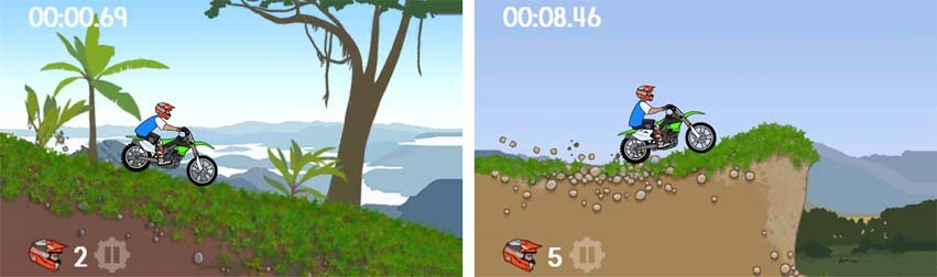 The bike rider does have a little rag-doll style as you maneuver up, down and over obstacle and when you crash. Keeping your balance is challenging and don't be surprised if you find the need to dial back the sensitivity of the Windows Phone accelerometer. The slightest of tilt can send your biking crashing to the ground.