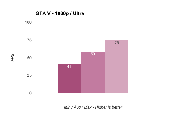 The RX 480 RS performs well here, providing a pleasant and stable experience. GTA V runs fairly well on even affordable GPUs so this isn't too surprising. It's even possible to crank down a few settings to game on a 1440p display.
